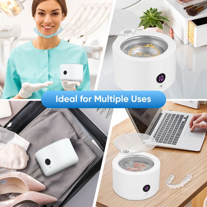[Nettoyage Puissant]: ce nettoyeur à ultrasons utilise des ondes sonores haute fréquence de 45 kHz pour pénétrer profondément dans les interstices et les rainures. Cela vous permet de nettoyer les objets sans endommager la surface. Les taches sur les prothèses dentaires, les appareils orthodontiques, les protège-dents, les appareils orthodontiques, les appareils orthodontiques, les bijoux, les ustensiles de maquillage, etc. sont efficacement éliminées. Ne convient pas aux lunettes.