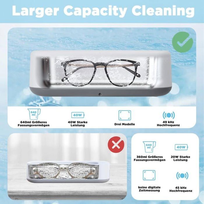 Nettoyeur A Ultrasons Professionel,640ml 49000Hz Nettoyeur Ultrasons Lunettes avec 3 Timer Réglages, pour Bijoux Lunettes Montres Label