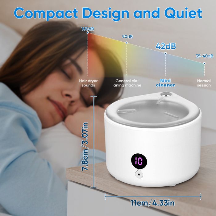 6. ce nettoyeur à ultrasons est léger et compact, petit et portable, avec une taille raisonnable qui n’encombrera pas votre bureau, et est livré avec un cordon d’alimentation amovible, ce qui le rend adapté à la maison, au bureau, aux voyages, à la clinique dentaire, etc. convient.