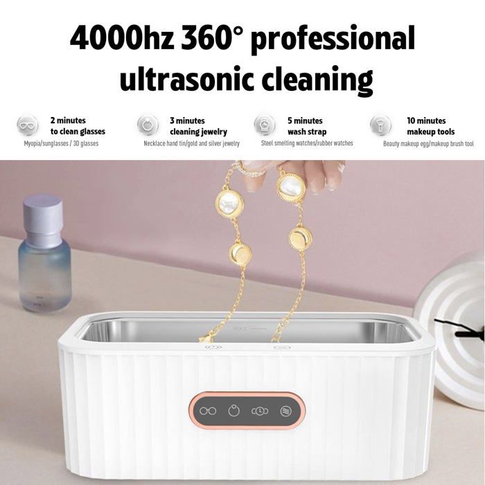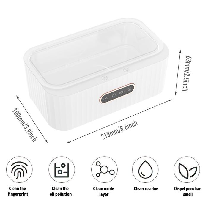 | Nom du produit | Nettoyeur à ultrasons,nettoyeur de bijoux à faible bruit,machine de nettoyage à usage domestique avec 4réglages de nettoyage,Blanc |