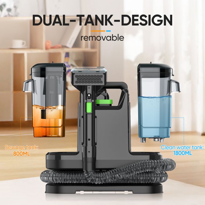 Nettoyeur de Tapis et Canapés 6-en-1 – 450W – Aspiration 12KPa – Double Réservoir (1.8L/0.8L) – 3 Brosses Incluses – Pour Maison et Poils d’Animaux
