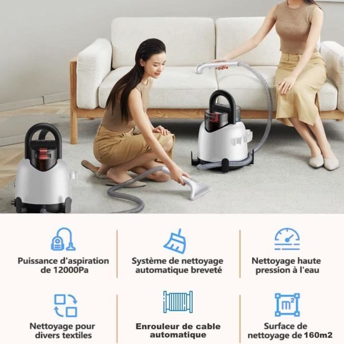 En 3 mouvements : pulvérise, frotte et aspire, le nettoyeur détachant nettoie les salissures du quotidien, enlève les taches et ravive les couleurs de vos tissus d’ameublement.