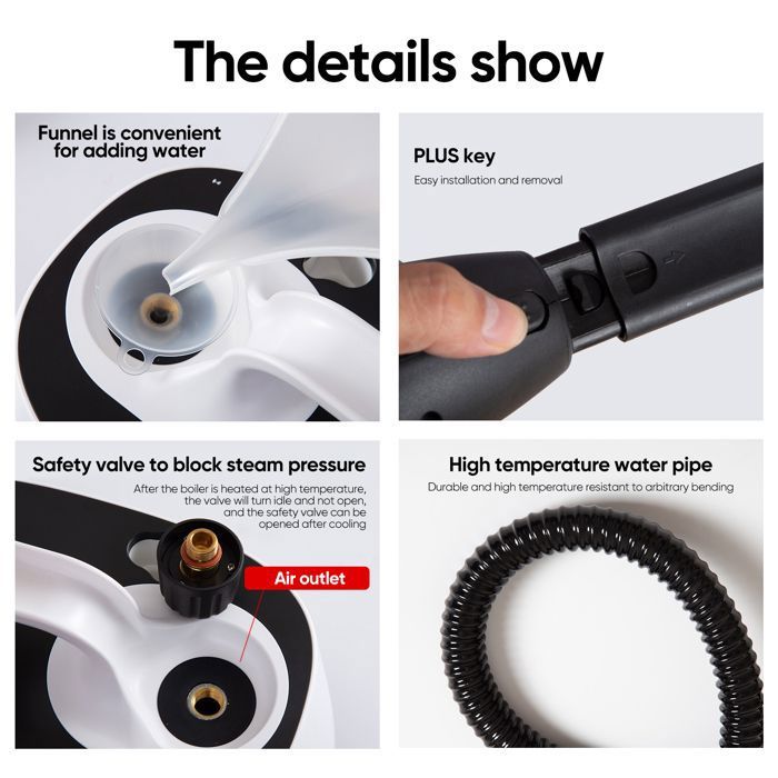 • [Sécurité] : Une sécurité enfant intégrée protège les enfants et les animaux domestiques contre les blessures accidentelles. Doté d’un système de contrôle de température ultra-sensible, le nettoyeur vapeur pour joints libère immédiatement de la vapeur si la pression de la vapeur dans la chaudière devient trop élevée.
