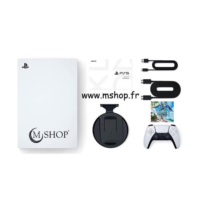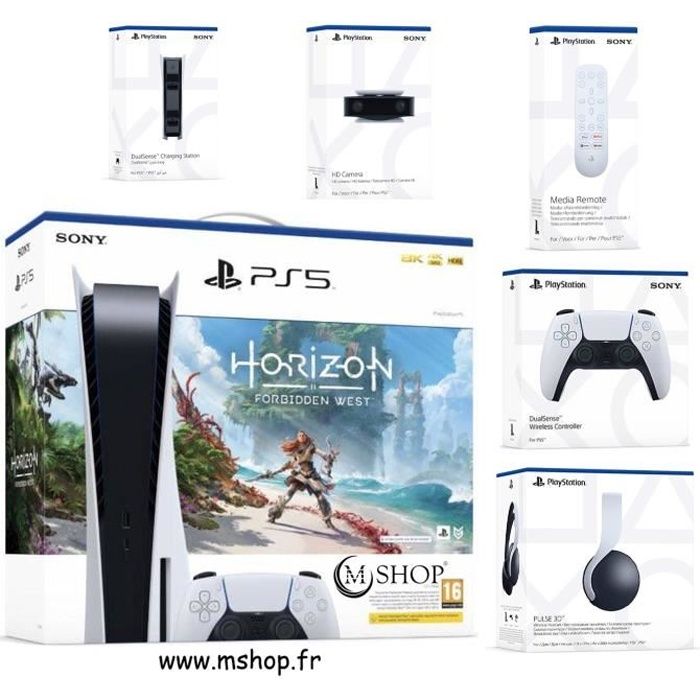 Nom du produit Pack Console PlayStation 5 – Horizon Forbidden West ALL in One – Sony – Blanc – 825 Go – Console de salon – PS5
