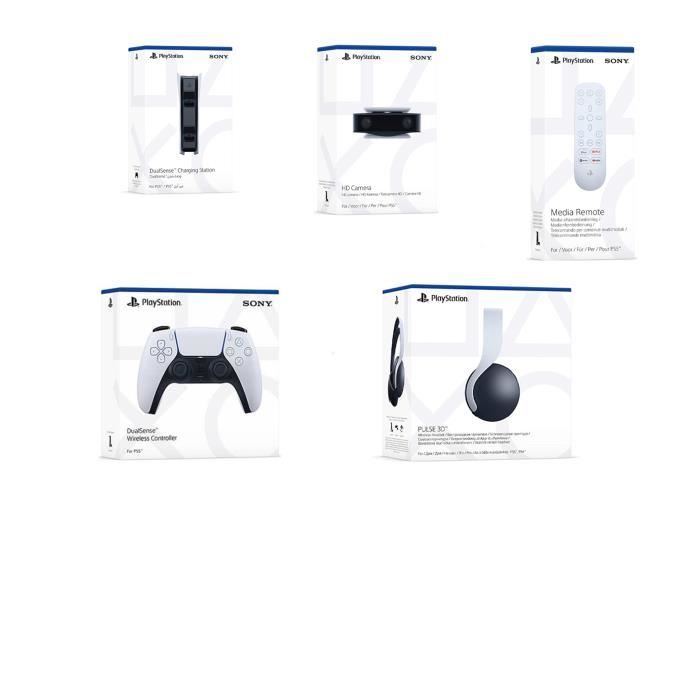 Inclut :Console PlayStation®5Manette sans fil DualSense™SocleCâble HDMI®Cordon d’alimentationCâble USBMatériel impriméASTRO’S PLAYROOM (jeu préinstallé)**Code de téléchargement du jeu complet Horizon Forbidden West™***DualSense Blanche – Manette PS5PS5 CHARGING STATION SONYCamera HD pour PS5Télécommande Sony Multimédia PS5CASQUE-MICRO SANS FIL SONY PS5 PULSE 3D BLANC