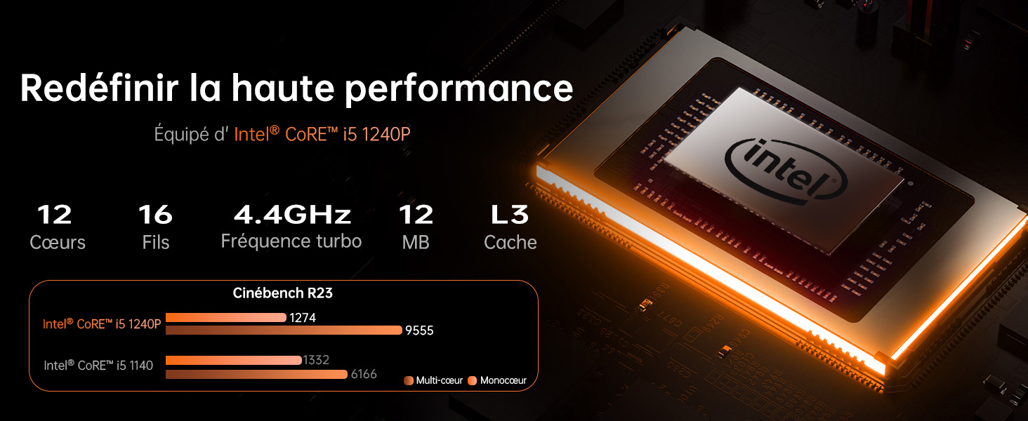 CPU: 12th Intel Core i5-1240P (Max to 4.4Ghz) 12 cores/16 threads