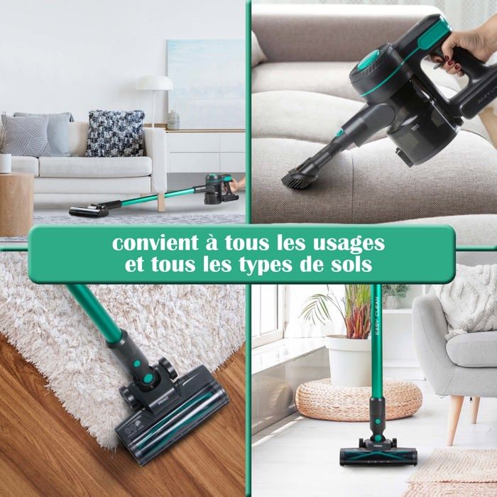 ASPIRATEUR-BALAI SANS FIL SUPER PUISSANT AVEC UNE BATTERIE LITHIUM-ION DE 22,2V