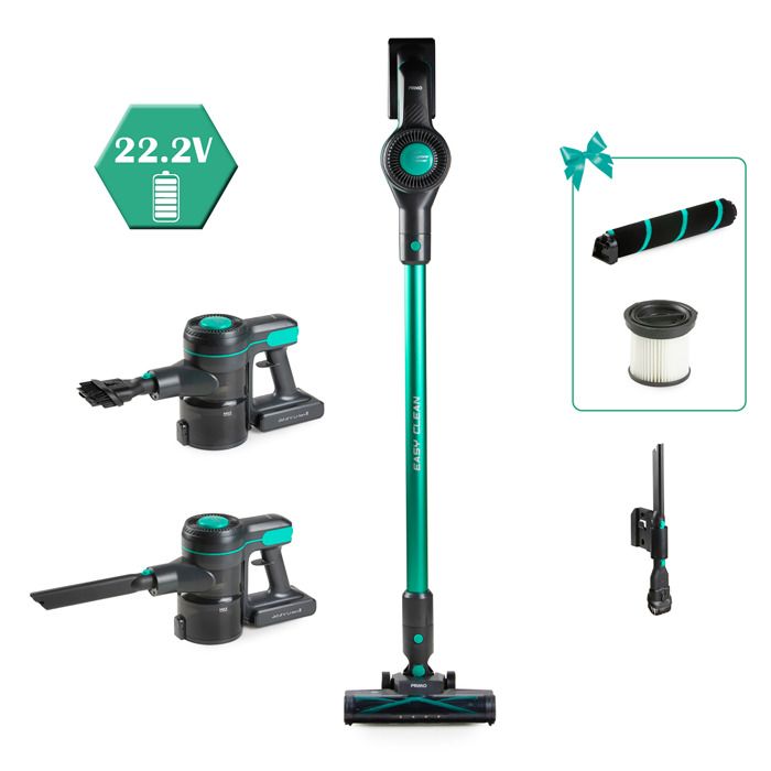 | Nom du produit | PRIMO PR509SV 3-in-1 Aspirateur balai Sans fil – Aspirateur sans sac – Dépoussiéreur – Gris/Vert |