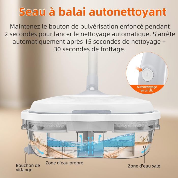One Press Operation du pulvérisateur d’eau, vous pouvez contrôler la quantité d’eau/d’huile/de solution que vous voulez. La fonction de pulvérisation peut également aider à polir et à cirer les sols.
