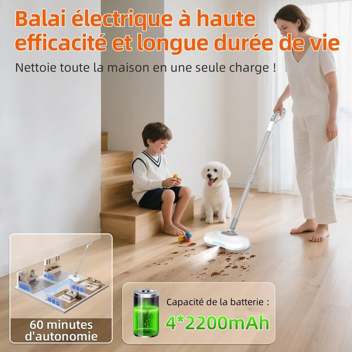 6. Alimentation Sans Fil : la vadrouille à piles ne vous gardera pas enchaîné au mur, vous pouvez nettoyer la maison sans limiter la longueur du cordon.