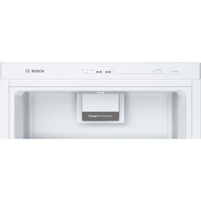 Réfrigérateur pose-libre BOSCH KSV33VWEP SER4 d’une capacité de 324 L. Classe énergie E, consommation électrique annuelle de 113 kWh. Froid ventilé. 1 porte réversible. Dimensions : H176xL60XP65 cm. Couleur : Blanc.