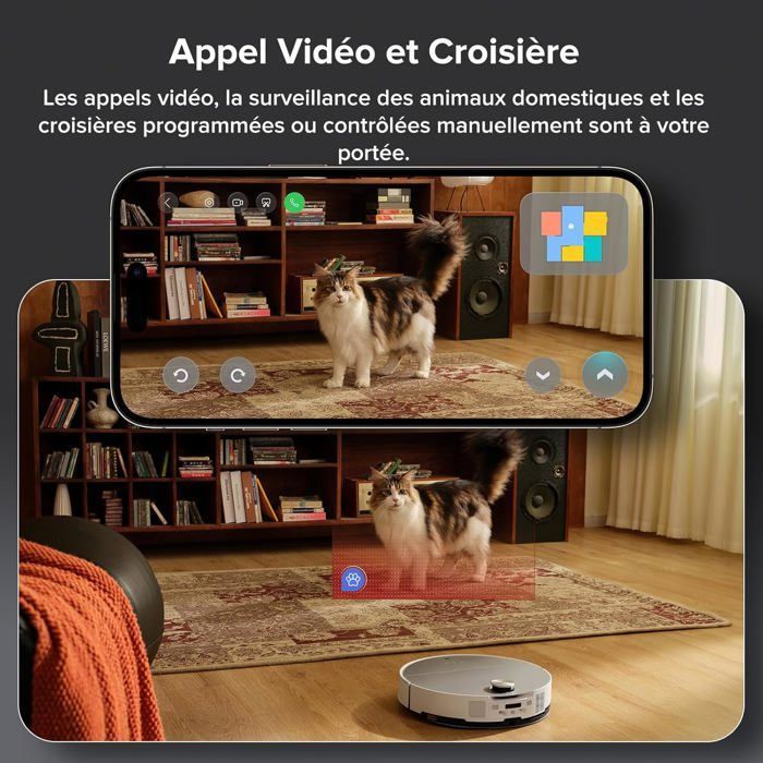 The Saros 10 is ideal for pet-friendly households! Keep an eye on your pets when they are alone with Pet Snaps and Video Call & Cruise.