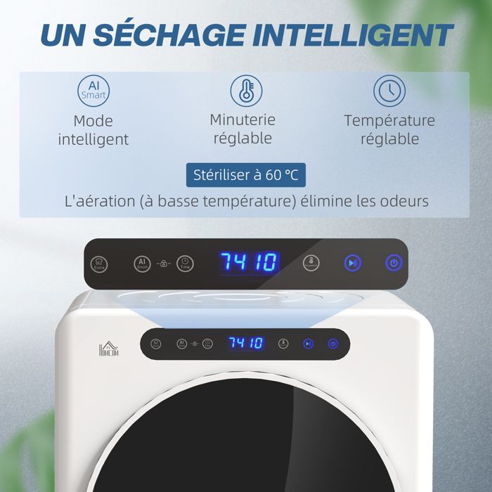 Sèche linge à évacuation – HOMCOM – 1000 W 3 Kg – 6 modes de séchage, minuterie – acier inoxydable – 49 x 43 x 61 cm – blanc