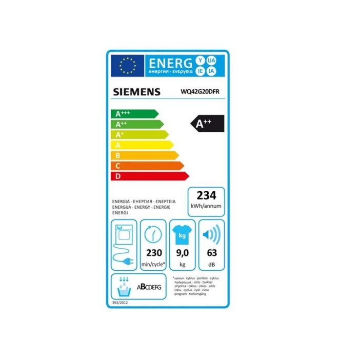 | Nom du produit | Sèche-linge – SIEMENS – WQ42G20DFR – 9 kg – Classe A++ – 63 dB – Pompe à chaleur |