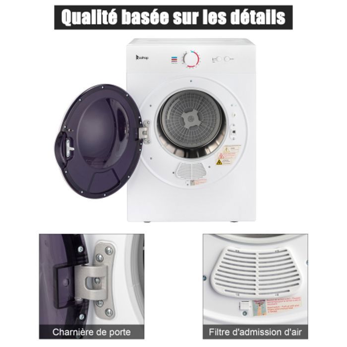 Parfait pour sécher les vêtements de bébé, les petites charges comme vos sous-vêtements, votre pyjama, votre combinaison de yoga, vos T-shirts, votre serviette, votre mouchoir, vos chaussettes, etc. Pour un séchage rapide des vêtements, nous vous recommandons de ne pas mettre plus de 6,6 livres de vêtements à la fois