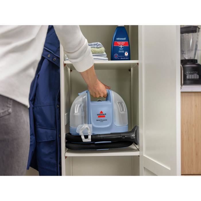 Le BISSELL® SpotClean® Mini est un nettoyeur portatif compact et léger, idéal pour éliminer les taches tenaces sur divers surfaces comme les tapis, moquettes et tissus d’ameublement. Sa puissance de 330 W et sa capacité de 0,5 L en font l’outil parfait pour les endroits difficiles d’accès, tels que les escaliers et l’intérieur des voitures.
