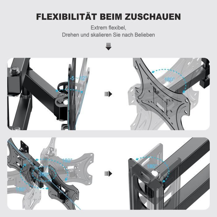 Le bras n’est pas assez solide pour une tv de 55 pouces. Il est tordu et la tv penche selon l’angle.