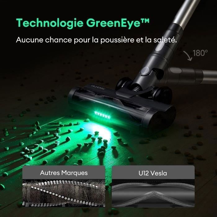 | Nom du produit | Ultenic U12 Vesla – Aspirateur Balai sans Fil 4 en 1 – Laser révèle la poussière microscopique – 50KPa – 45 Min – Anti-Emmêlement |