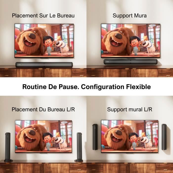 Barre de son tout-en-un détachable, multi-montable et portable pour toute combinaison avec TV/PC/ordinateur/portable afin de s’adapter aux besoins et environnements changeants.