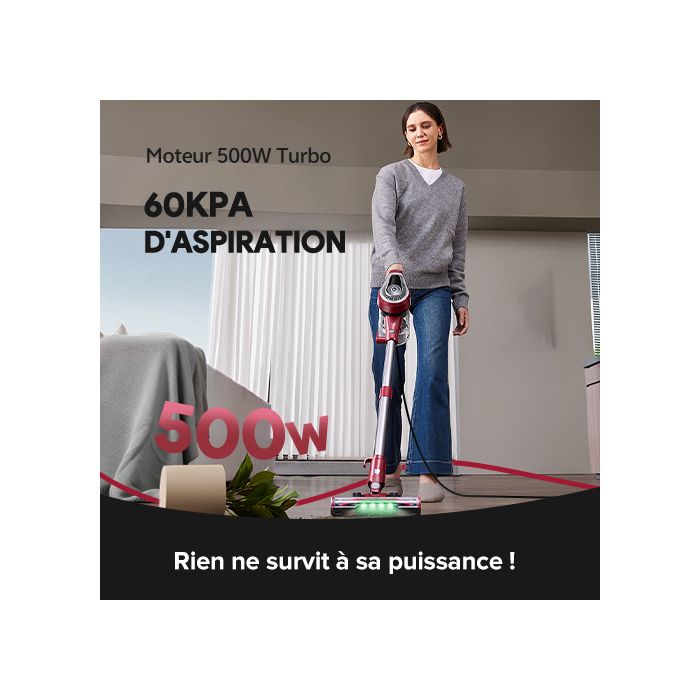 Aspirateur Balai Avec Fil 3 en 1 (60KPa de puissance d′aspiration, 500W, câble long 7m (couvrant 160m²), capacité 1,5L)
