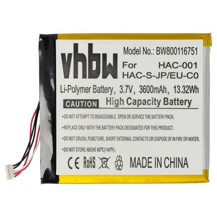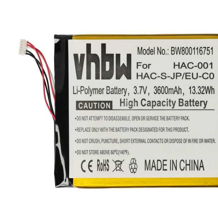 Batterie de rechange pour console de jeux | Rechargeable | Chaque cellule de batterie est testéeRemplacement pour HAC-003, HAC-A-BPHAT-C0 batterie de votre console de jeuxBatterie performante | Capacité : 3600 mAh | Tension : 3,7 Volt | Énergie : 13,32 Wh | Type : Li-polymèreConforme aux normes légales | Finition de haute qualité | Une utilisation durable
