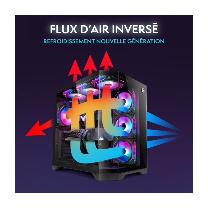 | Caractéristiques | Flux d’air exceptionnel | Conception en verre avec un superbe RVB | Superbe RVB, vue complète des composants |