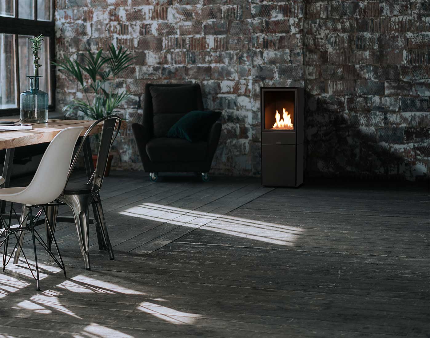• Scandi est un poêle au bio éthanol moderne de 101,5 cm de haut aux capacités chauffantes importantes avec ses 3,5 kW de puissance calorifique.